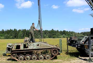 | Hartziel-Bergung Im Jahr 2010 wurde einer der SPz kurz Hotchkiss demilitarisiert und anschließend an ein Museum abgegeben. |